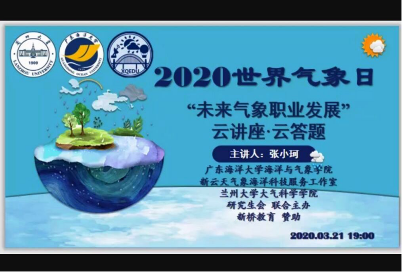 3月21日晚19时,“未来气象职业发展”主题“云讲座”在新云天气象专属社群准时开讲。本场讲座特邀了新云天气象创始人、气象职业规划专家、气象考研专业课讲师张小珂师兄向听众介绍气象学子未来升学、就业、出国等各项选择和注意事项,并回答了听众提出的问题。讲座期间,也穿插了有关气象方面的有奖谜语竞猜和趣味问答等有奖“云答题”活动,并由气象考研专业课培训机构——新桥教育为获奖同学提供了气象观测场模型、气象主持人画册、纪念书签、明信片等小礼品。