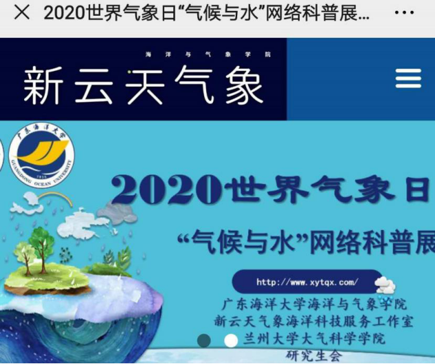 3月20日,“气候与水”网络科普展在新云天气象网站(www.xytqx.com)开幕。今年,世界气象日和世界水日共用同一主题:“Climate and Water(气候与水)”。本主题着重于以协调和综合方式管理气候与水,两者密不可分,都是可持续发展、气候变化和减少灾害风险等全球目标的核心。网络科普展刊载了世界气象日主题海报、世界气象组织秘书长致辞及气候、降水与人类活动等科普知识,让观众们了解世界气象日的重要意义,普及了“气候与水”的相关科学知识。