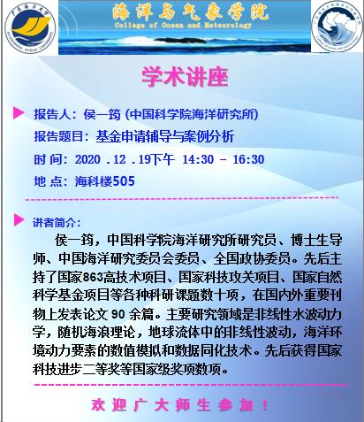 中国科成人视频 海洋研究所侯一筠研究员应邀作成人视频讲座(预告)